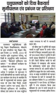 पशुपालकों को दिया बैकयार्ड मुर्गीपालन एवं प्रबंधन पर प्रशिक्षण